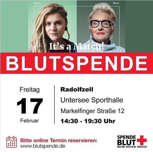 Auch dieses Jahr organisiert der HSC Radolfzell gemeinsam mit dem FC Radolfzell den Blutspendetag am Fastnachtsfreitag.